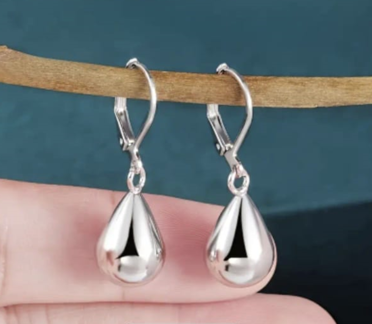 Resalta tu estilo con estos hermosos aretes enchapados en plata 925, diseñados en una delicada forma de gota que aporta elegancia y sofisticación a cualquier look.