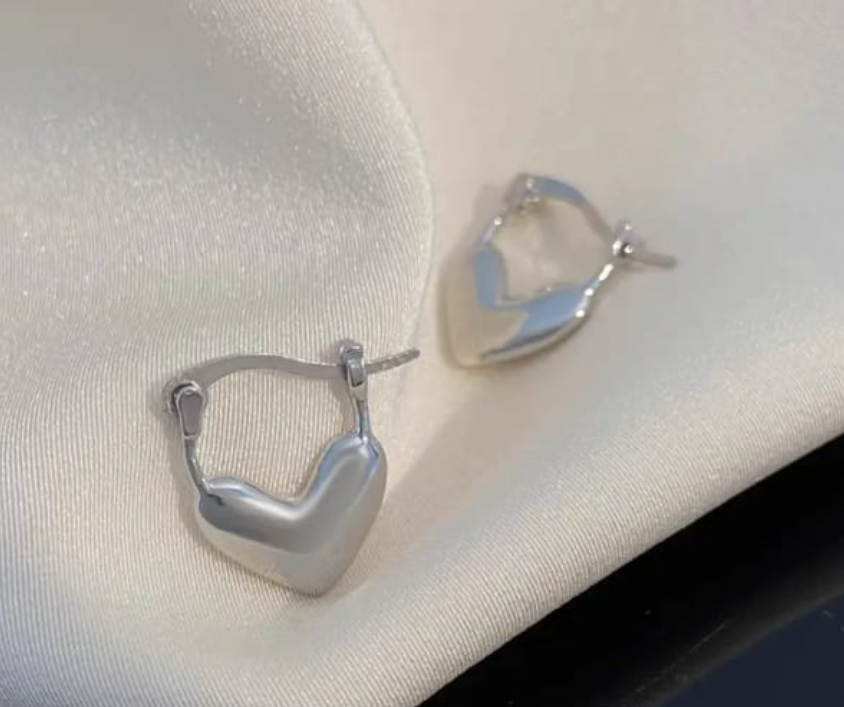 Realza tu estilo diario con estos hermosos aretes enchapados en plata 925 en forma de corazon.