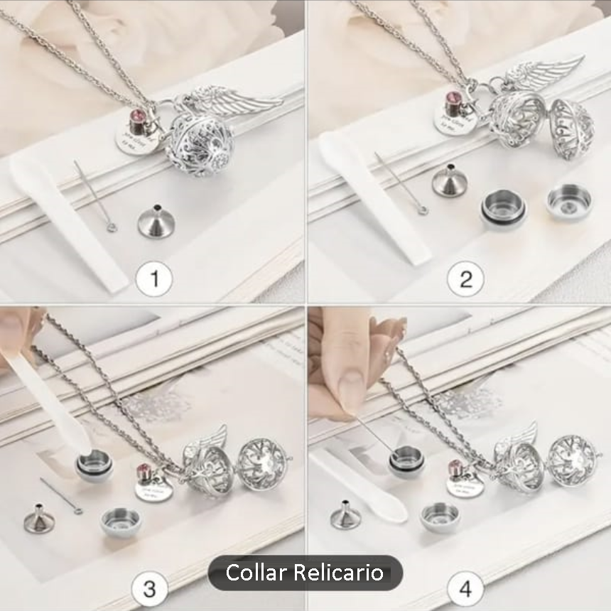 Collar relicario plateado de diseño elegante y atemporal, perfecto para llevar una foto, mensaje o recuerdo especial siempre contigo. Su acabado brillante y su estilo delicado lo convierten en un accesorio ideal para uso diario o como un regalo significativo.