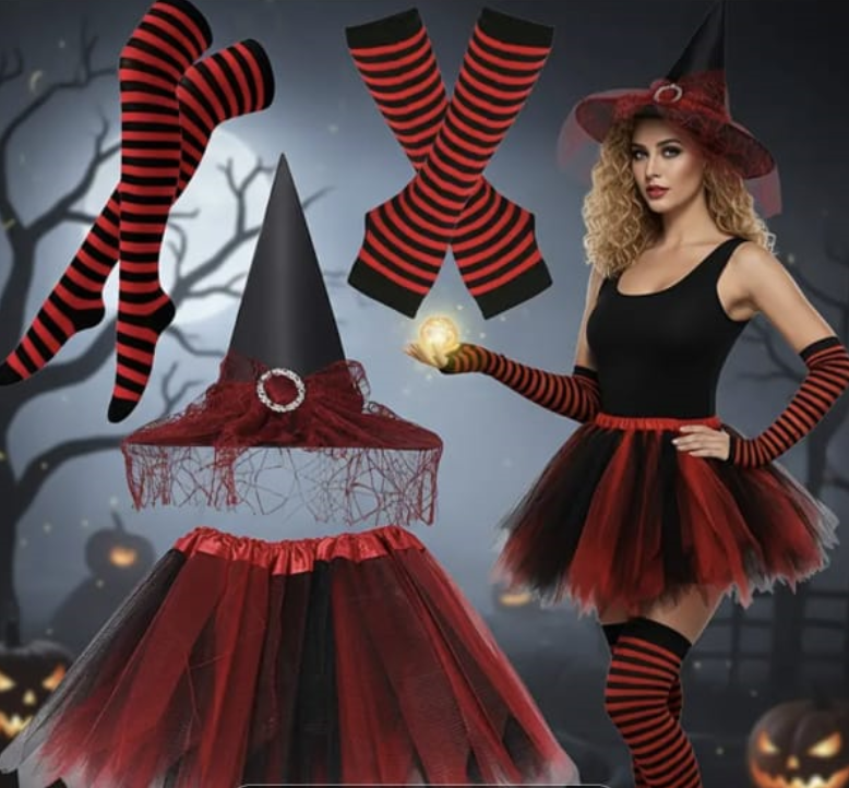 Transforma tu look para Halloween o fiestas temáticas con este completo disfraz de bruja para adulto, que combina estilo, diversión y un toque mágico.